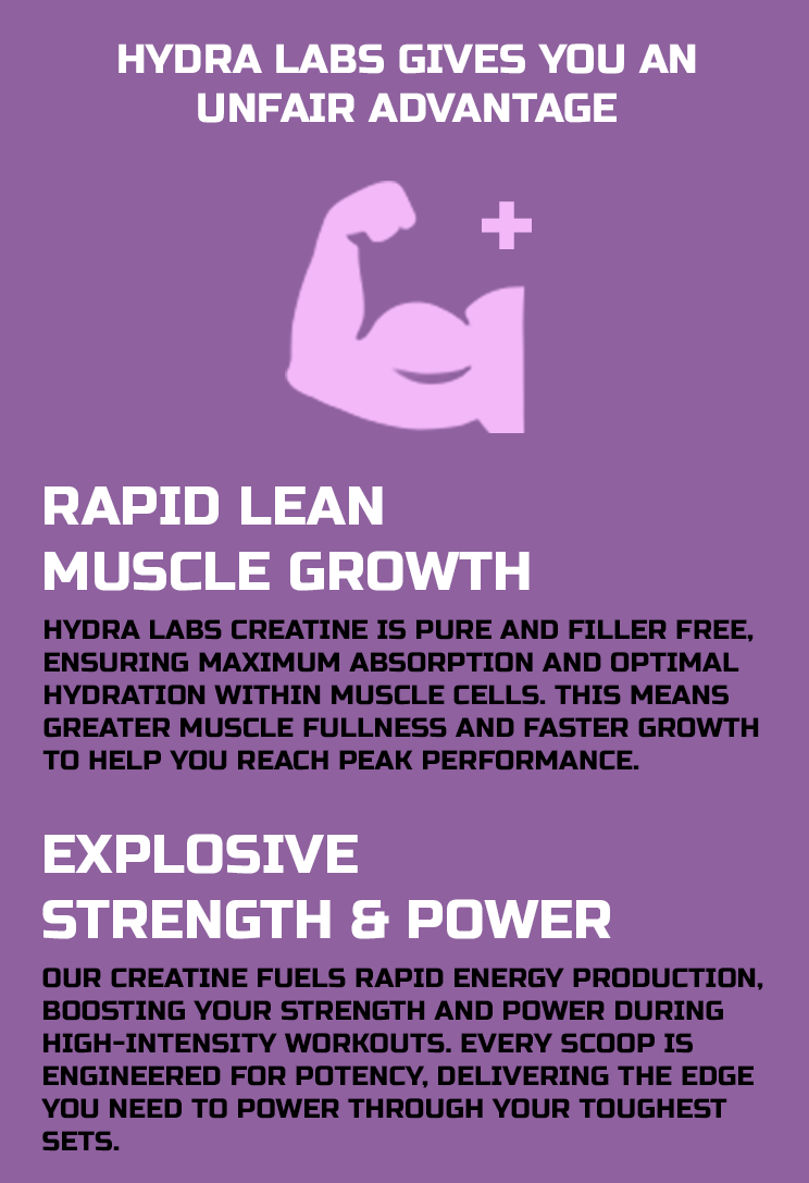 At Hydra Labs, we believe in providing high-quality creatine at an accessible price. We're not interested in making ineffective supplements or inflating costs. Here's what sets us apart: