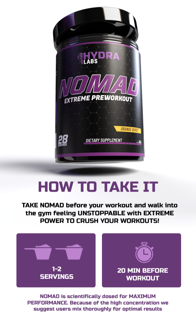 Bri After taking nomad I've seen a big improvement in my workouts. I'm able to lift heavier weights, I'm able to go for longer runs, and I'm just generally feeling more energetic and motivated. I would definitely recommend this product to anyone who is looking for a pre workout supplement that works.